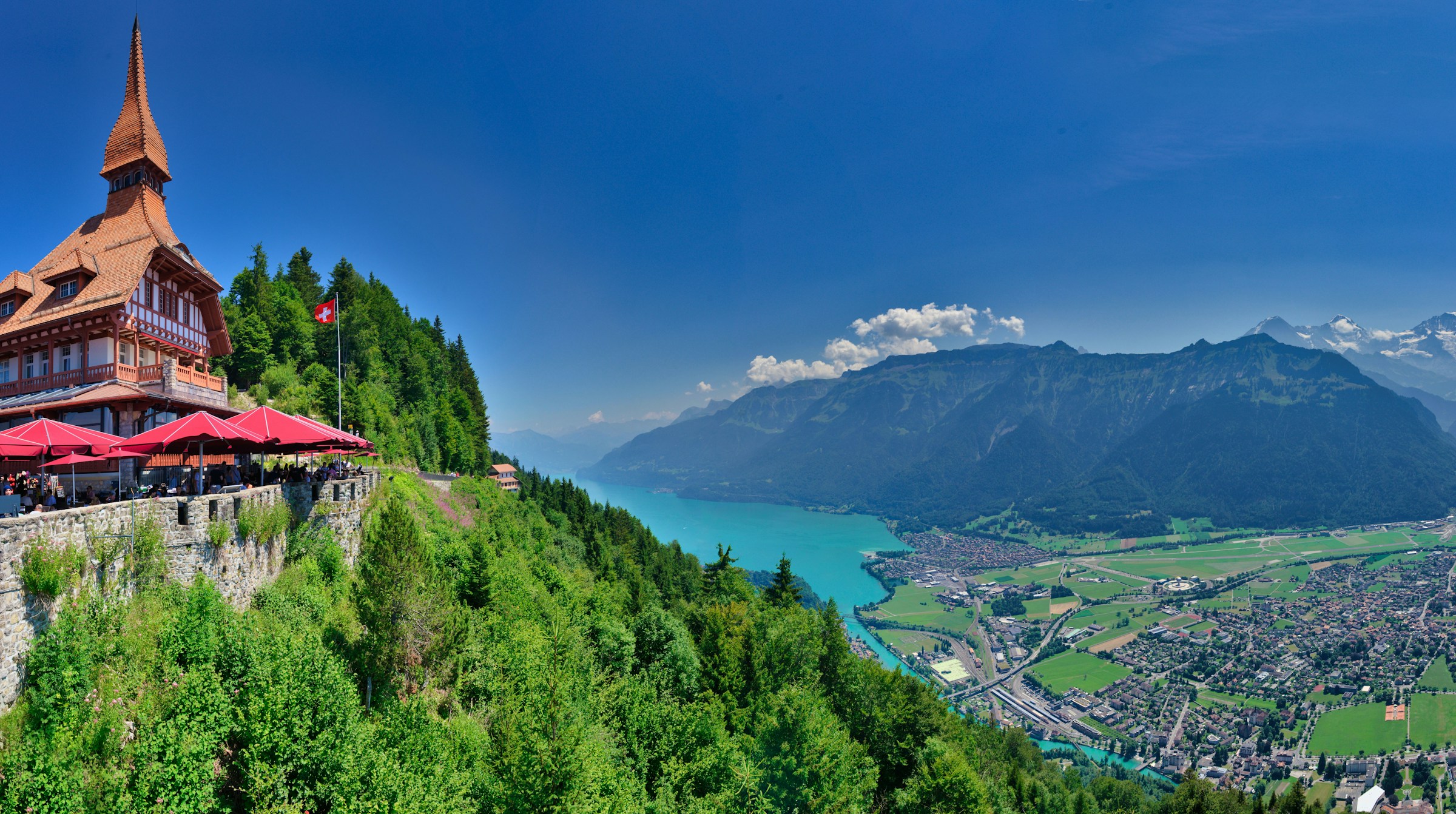 Ascend to the summit of Harder Kulm for unrivalled panoramas of both Lake Thun and Lake Brienz, with the majestic Swiss Alps as your backdrop. While the steep ascent presents a challenge, the sweeping views make it a rewarding endeavour.