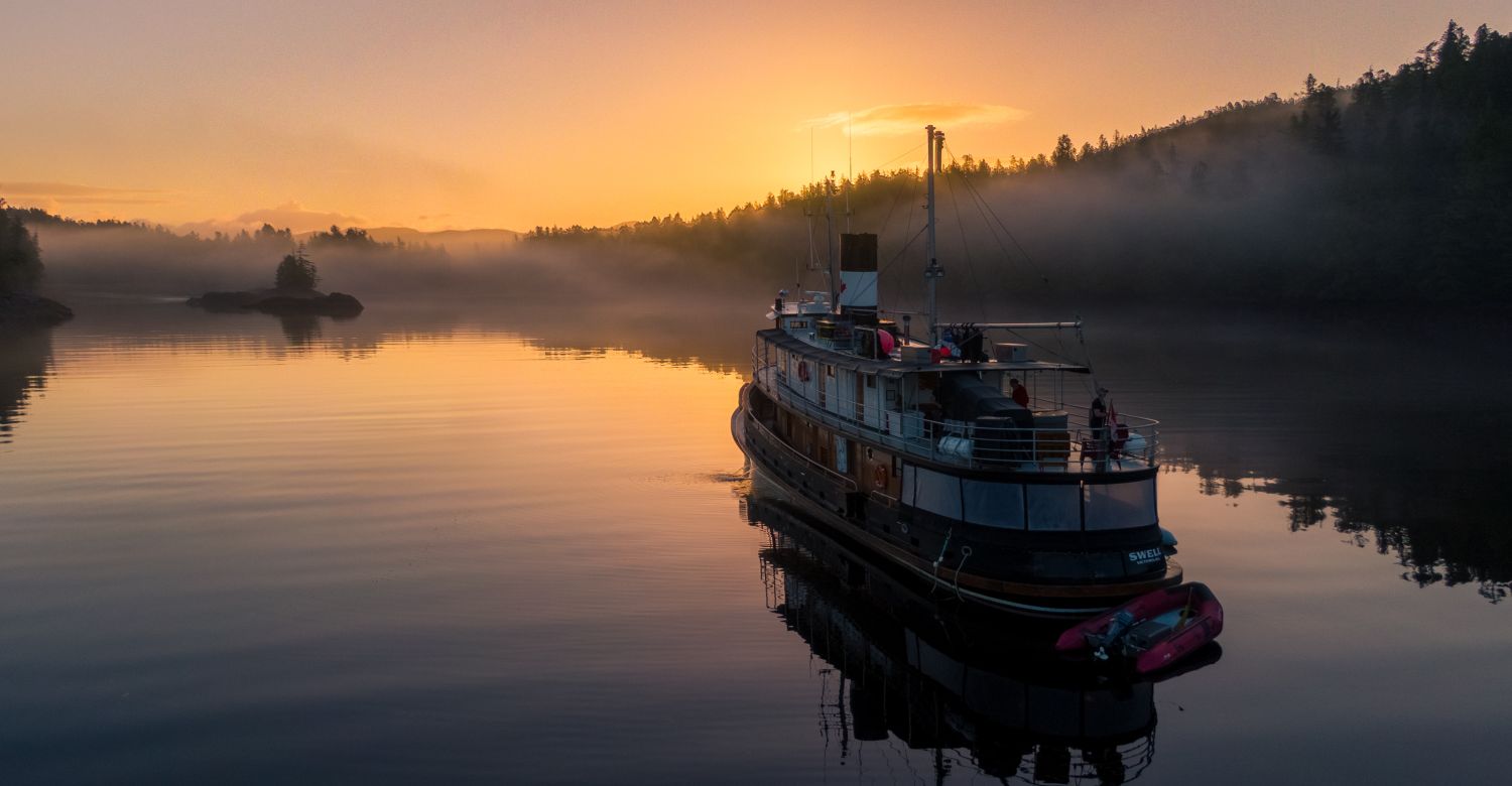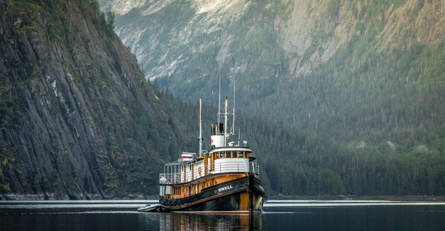 The MV Swell is a beautifully restored 88-foot boutique expedition vessel operated by Maple Leaf Adventures, offering an intimate and comfortable way to explore Canada’s wild West Coast. With just six private cabins accommodating up to 12 guests, Swell combines classic maritime character with modern comforts. Her inviting interiors feature warm wood panelling, a relaxed salon and dining area, and a covered aft deck for scenic lounging. Guests can unwind in the on-deck hot tub or venture out on guided shore excursions by Zodiac for close encounters with wildlife and coastal landscapes. Purpose-built for small-group exploration, Swell delivers an authentic, personalised and environmentally responsible adventure experience through some of the most remote and breathtaking waters in British Columbia and Alaska.