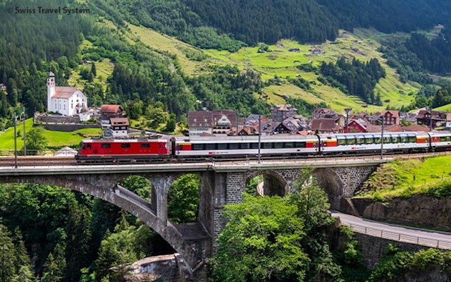 The Gotthard Panorama Express is more than a panoramic train ride, it is a journey by train and boat through the heart and history of Switzerland. It leads across the entire Lake Lucerne from Lucerne to Flüelen and from there with the SBB 1st class panoramic train over the Gotthard Massif into Ticino to Bellinzona and Lugano.