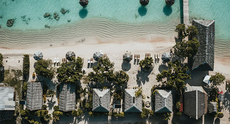 Set directly on the white‑sand beach and only a few metres from the turquoise lagoon, these bungalows enjoy a truly idyllic setting. They share the same layout and amenities as the Panoramic Garden Bungalows, with the added benefit of immediate beach access.